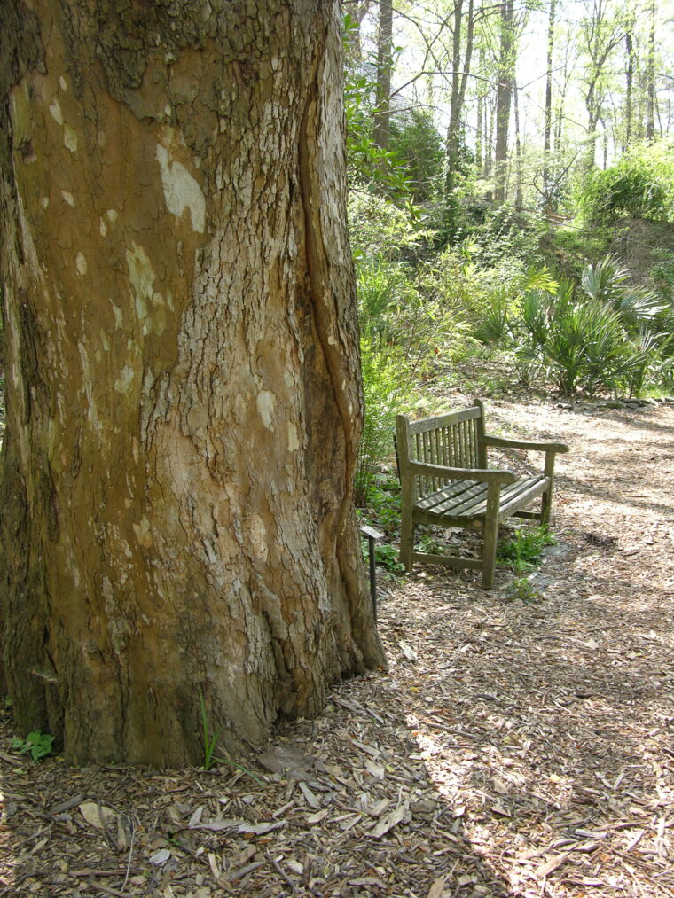 Several weeks ago, a large American sycamore tree growing in the Quarry Garden at the Atlanta History Center succumbed after many years of decline. When the tree was cut into sections for removal, the opportunity was afforded to Goizueta Gardens staff to count the tree rings, the yearly record of this sycamore’s life.