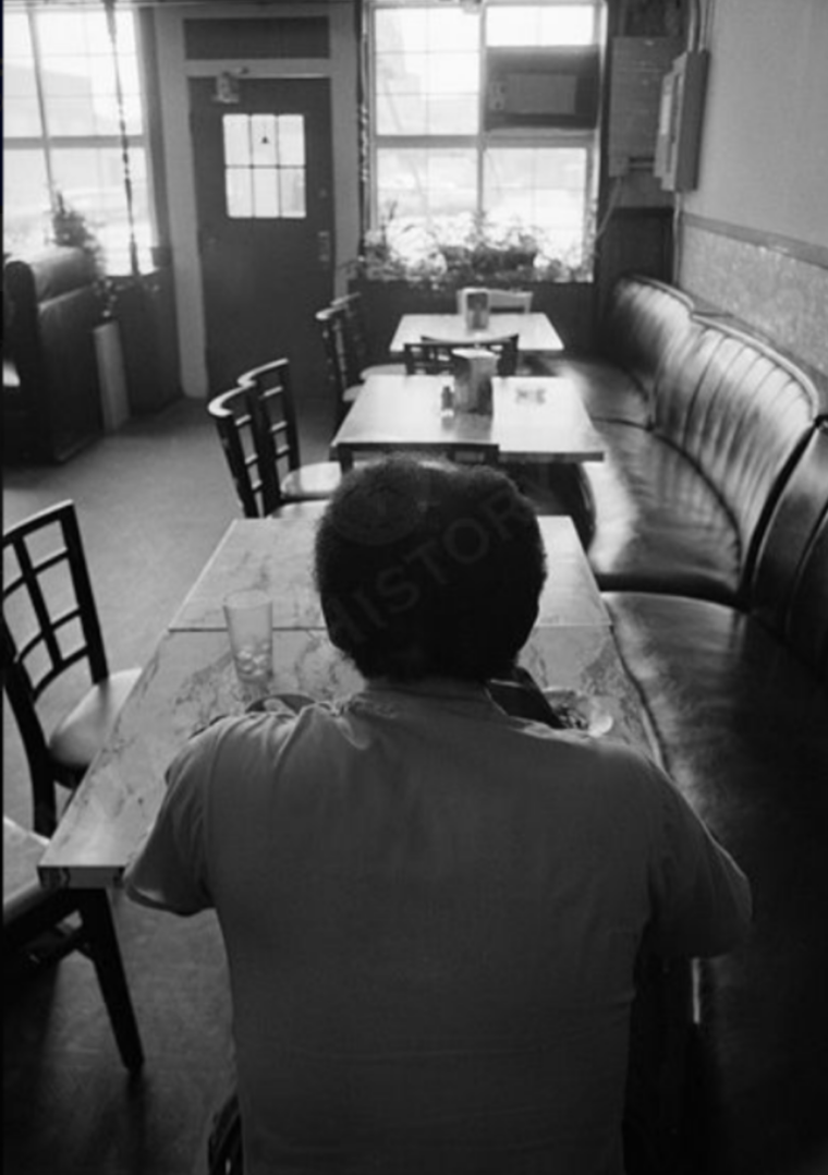 View of an unidentified individual eating at Shepherd’s Restaurant on Butler Street. Boyd Lewis, Boyd Lewis Photographs, Kenan Research Center at Atlanta History Center