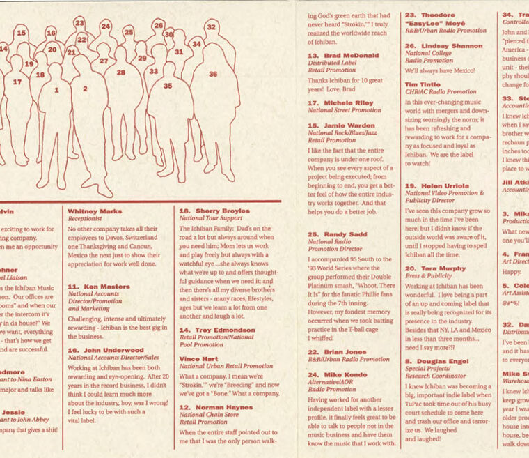 “We probably released more than 100 CDs that were by individuals that didn’t want to be part of a label, but they wanted the benefits of a label. Whereas, if you were on Ichiban, like every other label, we basically controlled what you recorded. Not as much because I think we were always a creative force that stumbled into the business rather than the business that stumbled into the creative force.”