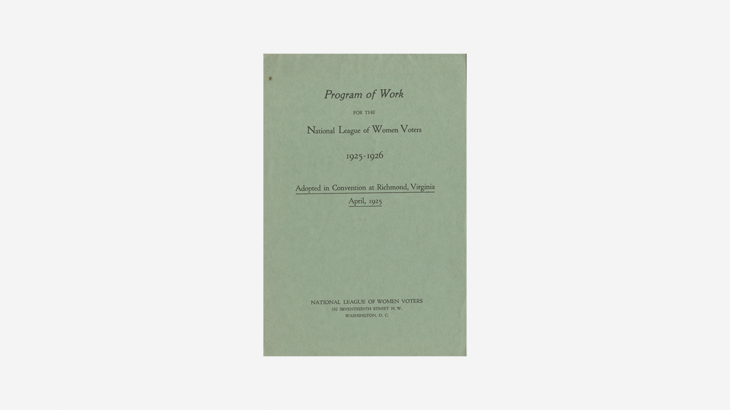 This collection contains materials that document Sally Fanny Gleaton’s career in women’s suffrage advocacy. The bulk of papers are from the National League of Women Voters, which include annual convention pamphlets, financials, rosters, and receipts from hotels. Other items include a scrapbook, newspapers and clippings, a “Votes for Women” banner, greeting cards, and correspondence between Gleaton and other leaders and members of the women’s suffrage movement.