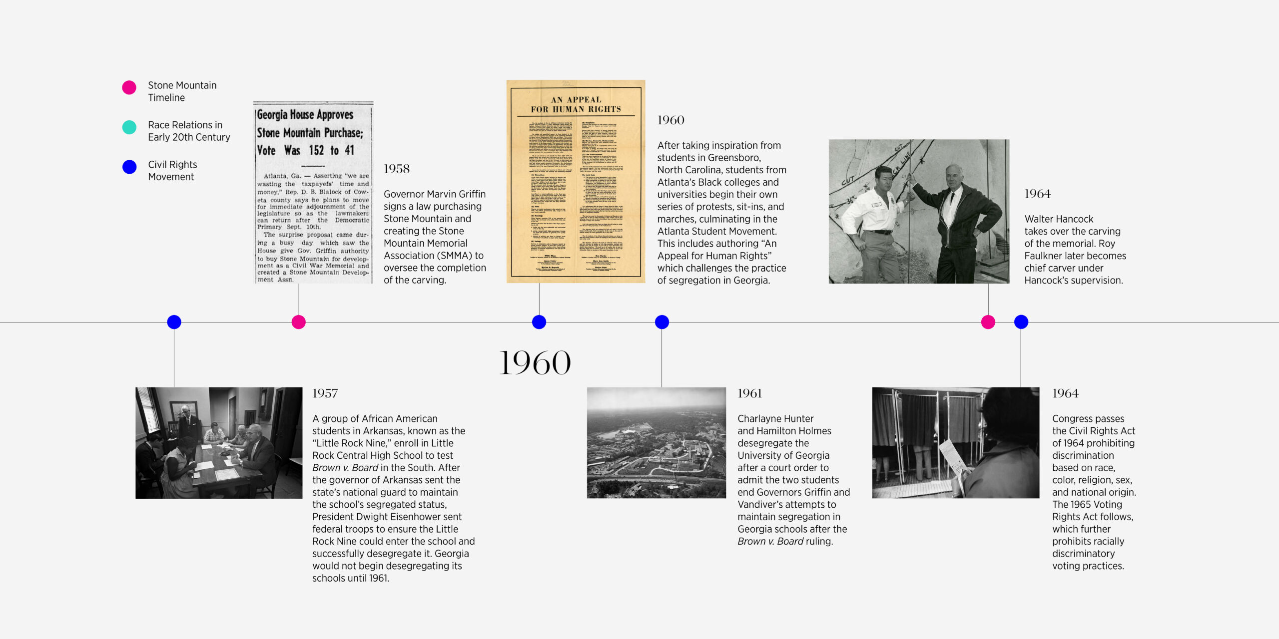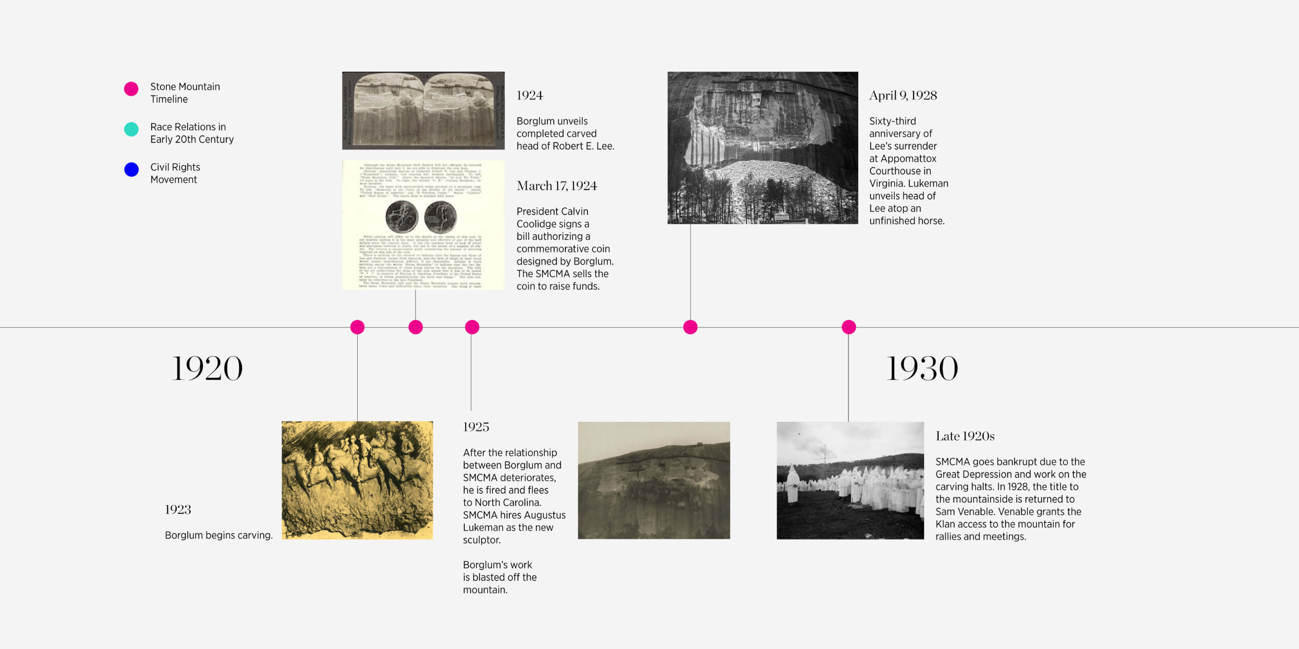 The two big efforts to carve the Stone Mountain monument happened during important moments in the larger movement for (and by others, against) civil rights for Black and other Americans.