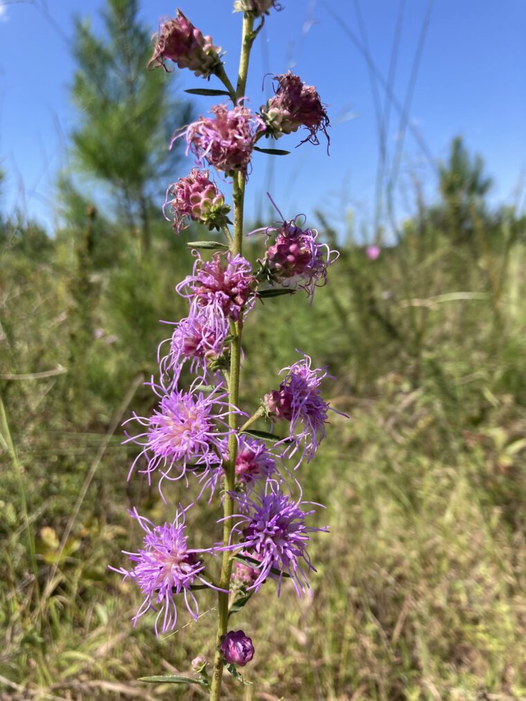 The sites we go to botanize are often thought of as natural communities, and to some extent they are, but they are equally influenced by human impacts—often wedged between different land uses that change over time. For example, the compaction caused by heavy logging trucks in the dry prairie exaggerated the barren condition that causes Liatris and Echinacea to thrive. In addition, there is the influence of restoration practices such as the prescribed fires that the Nature Conservancy uses to encourage conditions that benefit these rare prairie species.