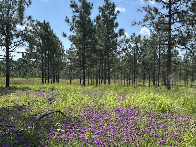 There are various ways to think about caring for these rare ecological communities, and we need a diverse approach to encourage their flourishing, just as we need different gardening styles. In May, our team was able to visit a large area of private land southwest of Atlanta, where the owners are using prescribed burns to maintain a former cattle ranch that has now been planted with longleaf pines and native grasses (pictured above). We learned about the challenges of keeping a grassland from developing into a woodland, and the abundance of aggressive sweetgum trees that seed in from surrounding areas.