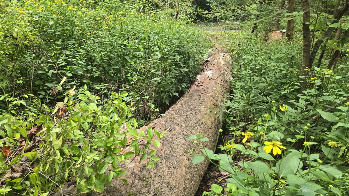 Though the tree in the Quarry Garden no longer stands, it lives on as a habitat for wildlife. A section of the trunk was left on the ground and will decay and provide a substrate for countless fungi, a nesting place for beetles and other insects, and a hollow shelter for small mammals and reptiles. Only days after the tree succumbed, new sprouts started to grow from the stump, a testament to this tough and resilient species.