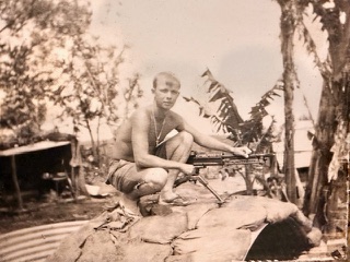 Sergeant L. K. Lannom Jr. cleaning an M60 platoon machine gun emplacement in Vietnam, 1968. Photo courtesy L. K. Lannom Jr.