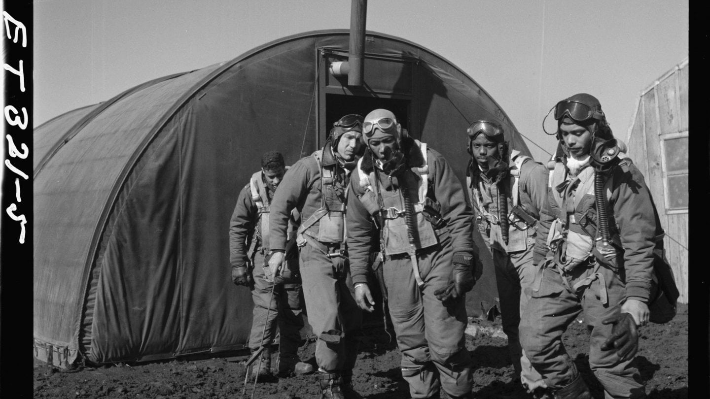 Tuskegee Airmen strategize in Ramitelli, Italy, March 1945. Image via Library of Congress.